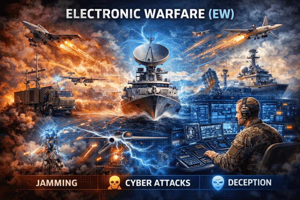 Modern warfare increasingly integrates cyber operations with physical military operations. Cyber-attacks can compromise air defence system software, preventing effective response to subsequent air strikes. Directed electromagnetic pulses might disable communications networks, preventing command center coordination of defensive response. Drone swarms can overwhelm specific sectors while cyber acts can create confusion and intelligence denial in command systems.