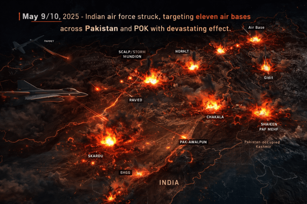 On night of May 9/10, 2025, Indian air force struck, targeting eleven air bases across Pakistan and POK with devastating effect. This was a calibrated attack carried out by first neutralizing PAF’s Chinese supported air defence infrastructure, followed by long-range precision standoff attacks using Brahmos, SCALP, Rampage and Hammer, supported by indigenously designed and developed Integrated Air Command and Control System (IACCS). The aerial duel was intense and unprecedented in scale with BVR combat and standoff ground to air weapons. Scale of damage inflicted and apparent air defence vulnerability forced Pakistan to call for ceasefire on May 10, 2025.