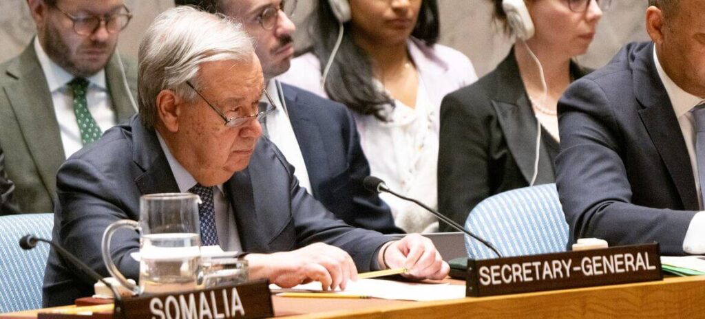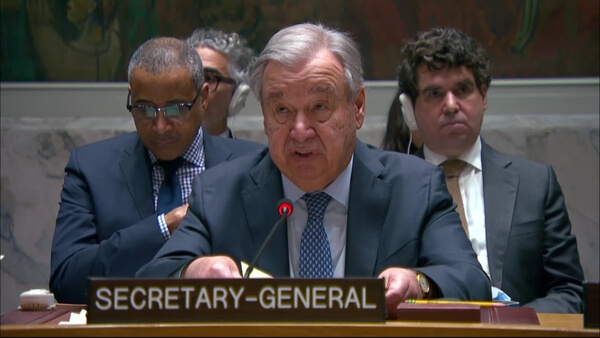 UN Secretary-General António Guterres briefing an emergency meeting of the Security Council on 28 February. UN Photo/Eskinder Debebe