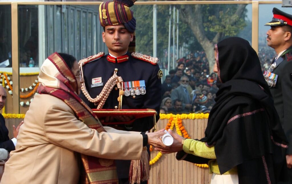 Nb SubChuni Lal’s act of great bravery, leadership and supreme sacrifice helped eliminate the Pakistani terrorists and also saved the lives of the soldiers under his command. His actions that day earned him the Ashok Chakra, the nation’s highest peacetime gallantry award (posthumously). Chuni Lal’s wife, Chinta Devi, received the Ashok Chakra on his behalf from Pratibha Patil, the 12th President of India on August 15, 2007.