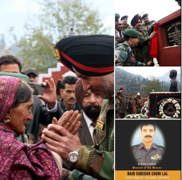 Nb Sub Chuni Lal’s gallant deeds and the journey from the 1st day as a raw recruit in 8 JAK Li to his last operation are mentioned in former 15 Corps Commander Lt Gen Satish Dua’s book ‘Bravest of the Brave’.