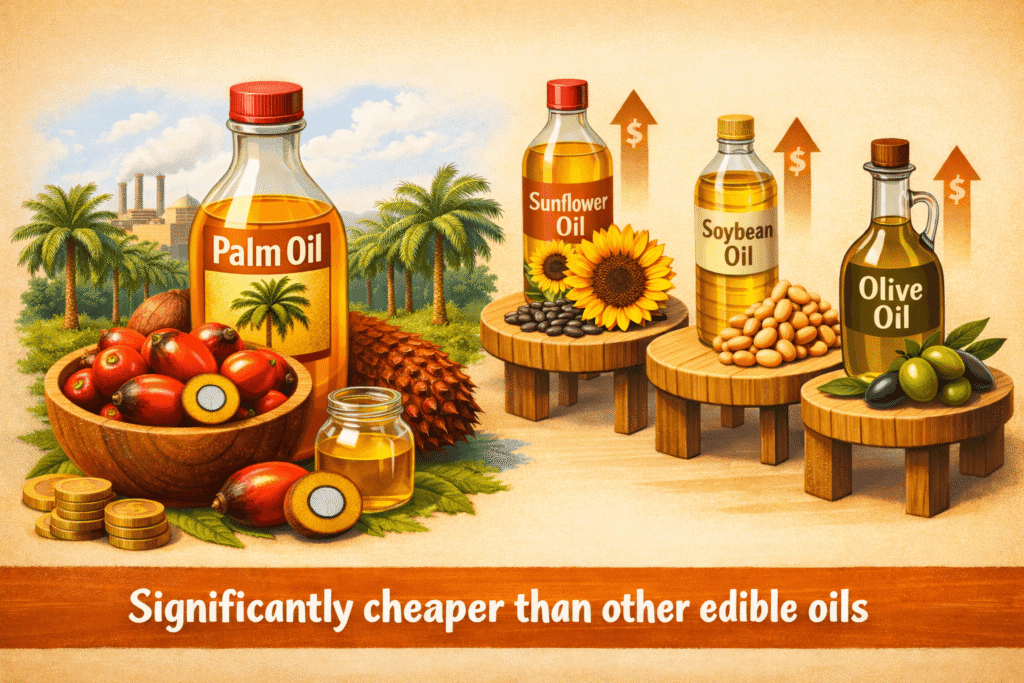 Palm oil’s dominance is rooted in economics. India imports millions of tonnes annually, mostly from Indonesia and Malaysia, where vast plantations churn out oil at rock-bottom prices. For food companies, it offers several irresistible advantages.