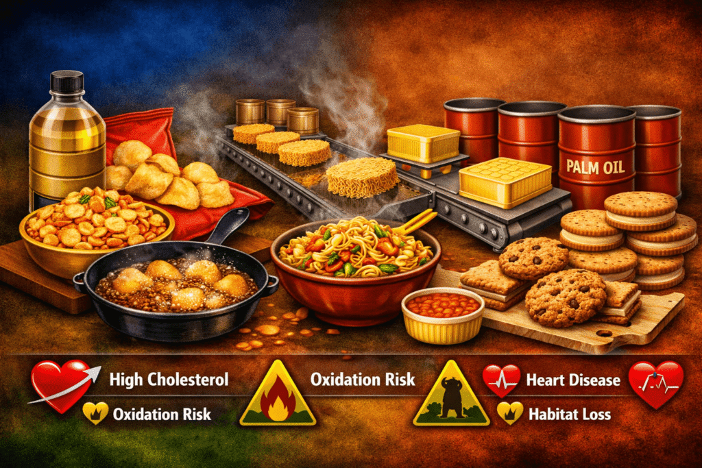 How ultra-cheap palm oil has quietly taken over the Indian processed food shelf — and what that means for health and the environment