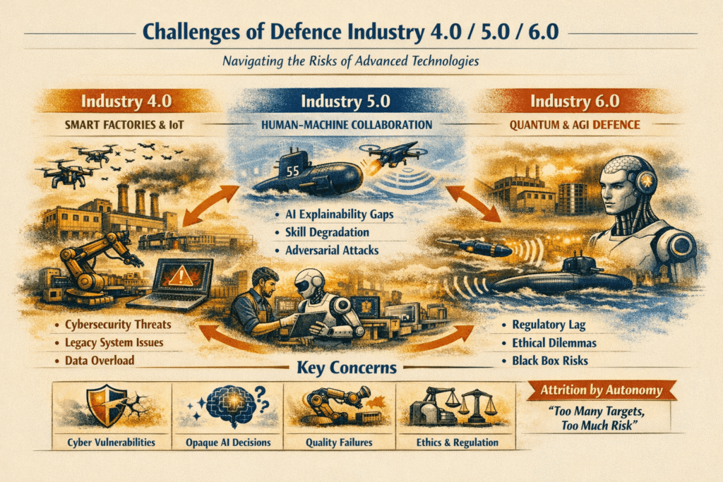 The transition from Industry 4.0 to 6.0 signifies the evolution toward more intelligent and integrated systems. For the military-industrial complex, this transformation is essential to maintain a competitive edge. Weapons systems will become more advanced, exhibiting increased lethality and the capacity to collaborate with autonomous systems.