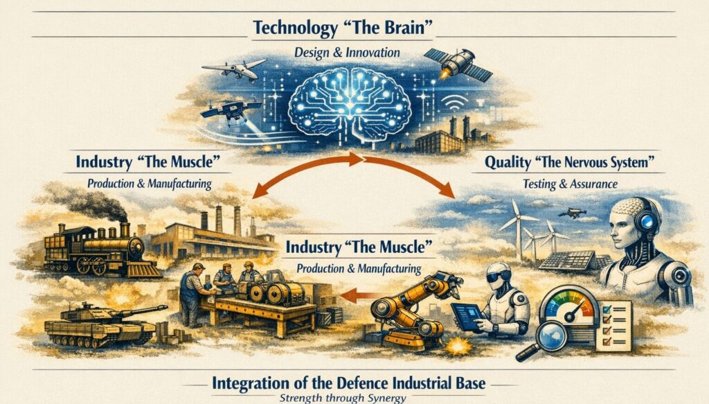 In the current landscape, particularly for an emerging power, the integration of these three elements is often referred to as defence industrial base (DIB) self-reliance, where technology serves as the ” brain ” (design), industry as the ” muscle ” (production), and quality as the ” nervous system “. An advanced MIC is characterised by cutting-edge technology, rapid industrial production, and quality that ensures reliability at critical moments.
