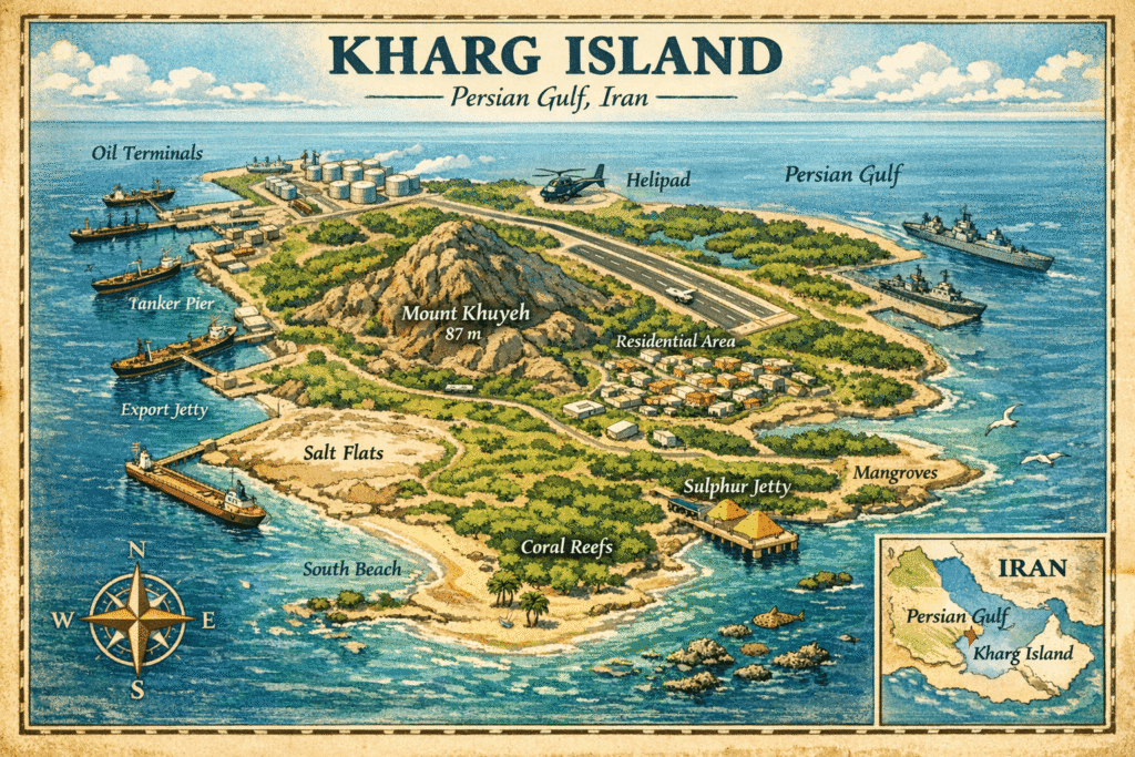 Kharg Island holds substantial strategic importance for Iran’s oil economy, managing approximately 90% of its crude-oil exports. Securing control of the island could enable the United States to weaken the IRGC and terminate the maritime blockade. Other islands, such as Qeshm and Tunbs, are also considered potential targets for dismantling Iran’s defence infrastructure.