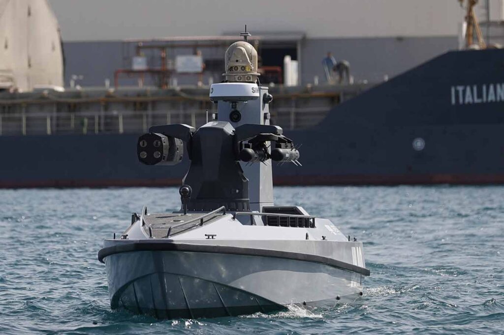 Drone swarms can patrol strategic maritime zones and ports to detect and neutralise potential threats. Agile USVs equipped with explosives can engage larger vessels from multiple vectors, complicating defensive measures and inflicting significant damage. USVs possess the capability to manoeuvre and deploy or support UUVs and smaller UAVs, this facilitates a distributed defence mechanism around the primary island.